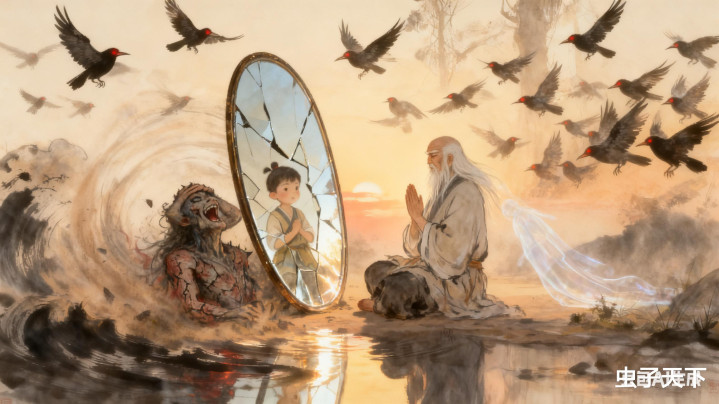 他竟撤了法宝,盘坐诵《寂寥经》。镜光再照来时,竟映出多宝前世:
